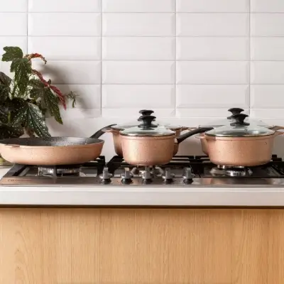 Conjunto de Panelas Antiaderentes 5 Peças Champagne