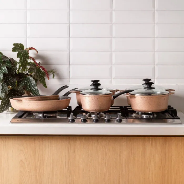 Conjunto de Panelas Antiaderentes 6 Peças Champangne